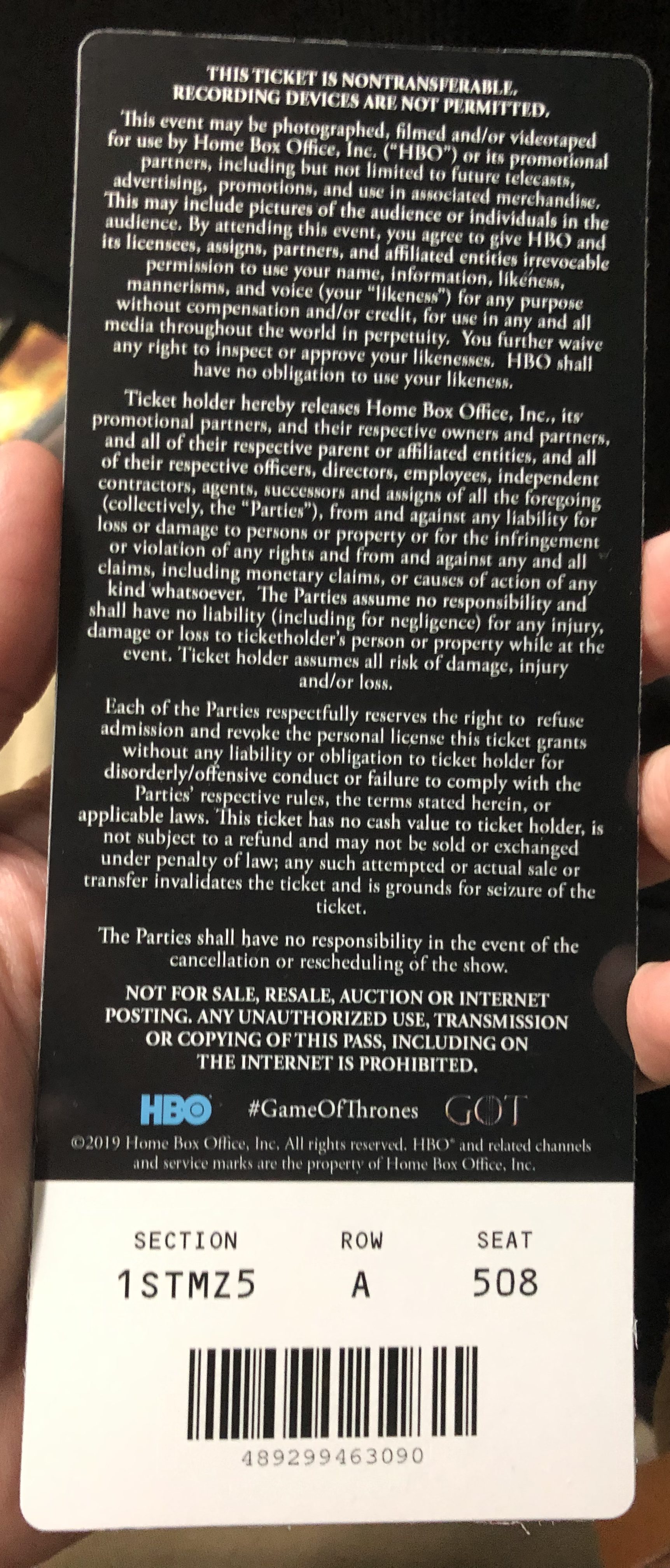 HBO once again outdid themselves with this premiere event. I feel very thankful and fortunate that I got to be a part of this big send-off for Game of Thrones. I had an amazing time both on the Dragon Wagon as well as in the Fan Zone and at the premiere. HBO did an excellent job planning and executing this event, making sure that every possible need was met and that we were well fed, and made us feel like VIPs the whole time. My Dragon Wagon experience will make these final six episodes of the series that much more special. I can’t wait to see how the series ends…who lives, who dies, and who sits atop the Iron Throne! Well, in Westeros…I already know who sits on it in Boston!