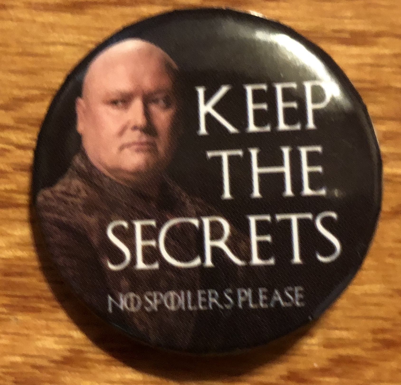 On our way out of the theatre, we were handed pins to remind us not to say anything about what we saw.