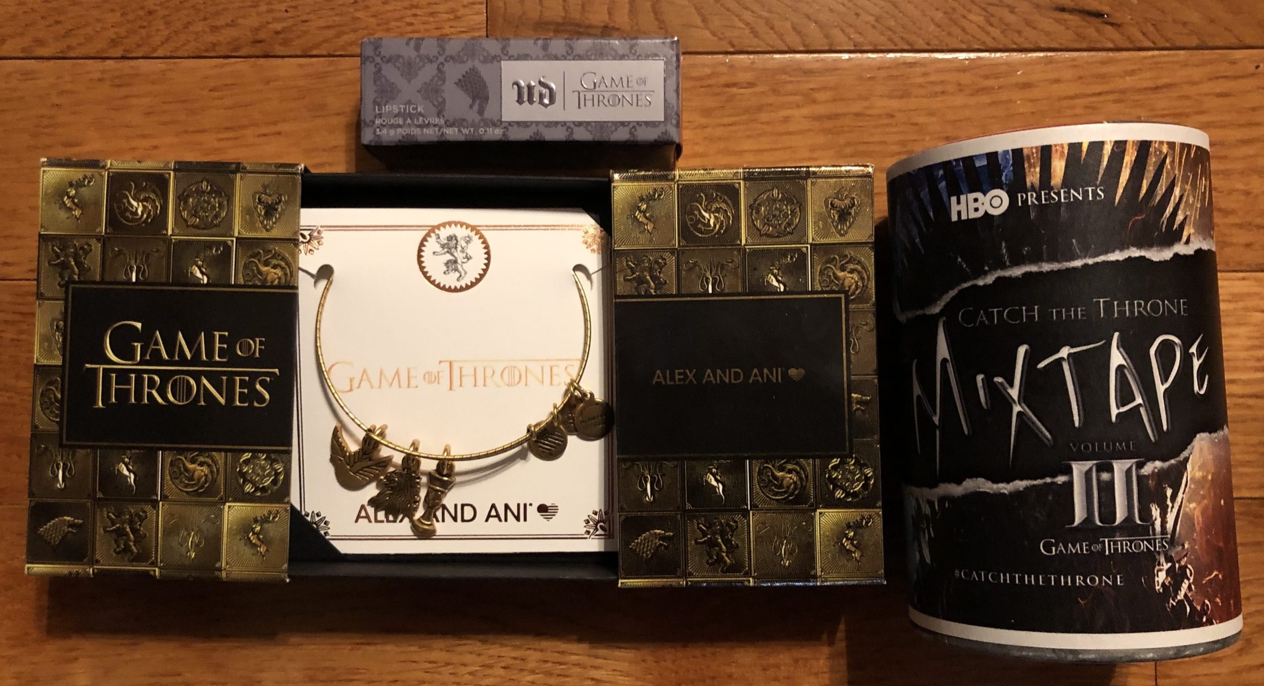As we got off the bus, we were handed even more swag, this time an Alex and Ani bracelet and a Game of Thrones lipstick. They were also handing out some of the leftover trivia prizes, so I finally won something…a copy of the Game of Thrones Mix Tape Volume II.