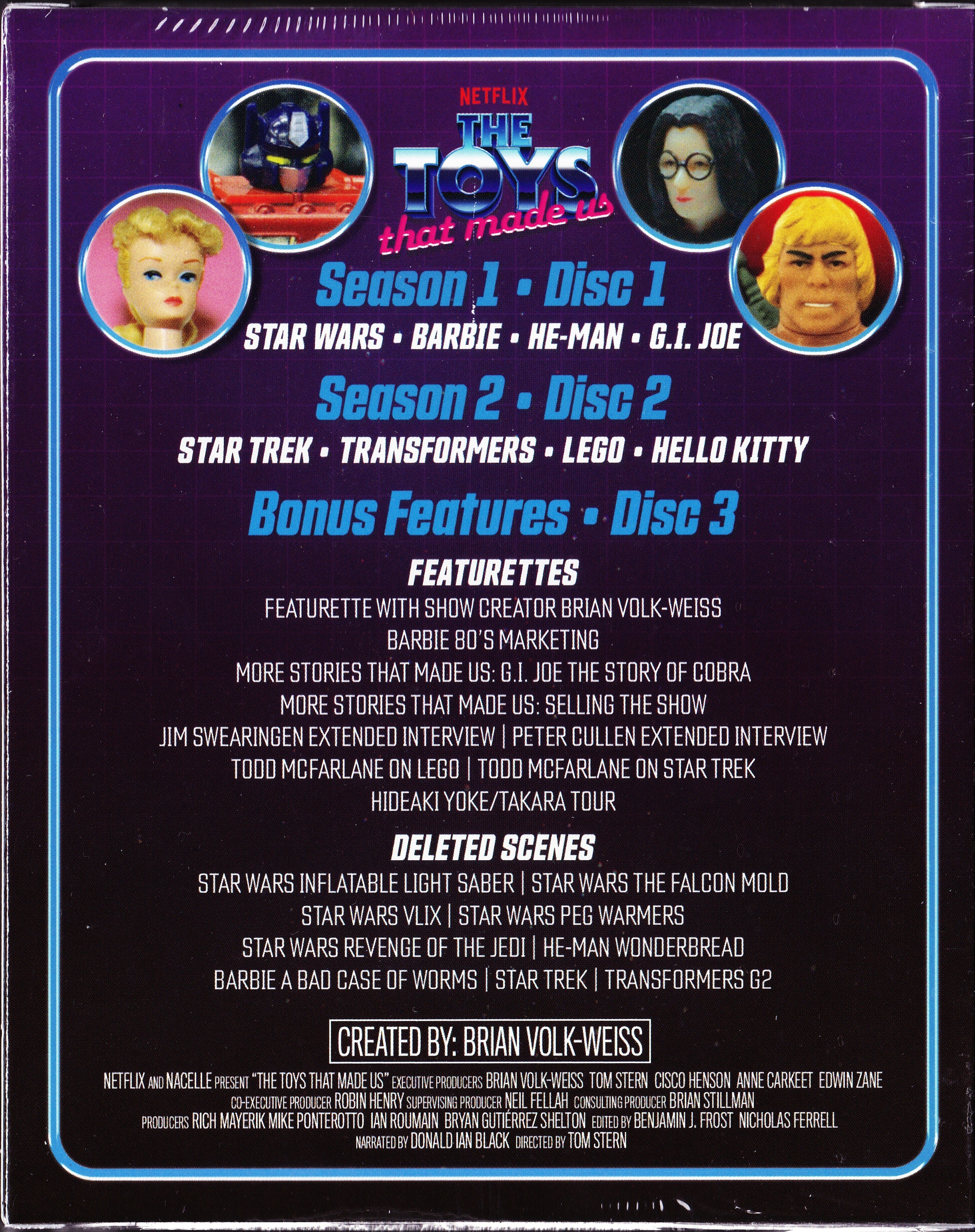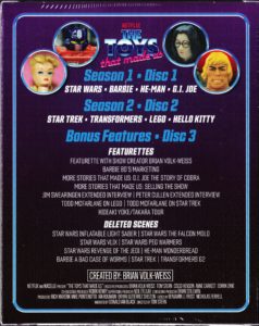 Disc 1 (Season 1): “Star Wars”, “G.I. Joe”, “He-Man”, “Barbie”
