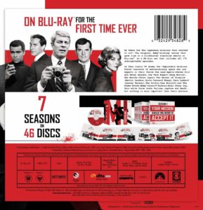 The original, classic Mission: Impossible series ran for 7 seasons, from 1966-1973. It followed the adventures of the talented Impossible Missions Force (IMF), a group of elite spies who were often assigned seemingly impossible tasks, but always managed to come through in the end. My first introduction to the IMF was the show’s revival series in 1988. At the time I wasn’t even aware that there had been a previous series, and only saw the original show for the first time on DVD about 14 years ago. Now the original series makes its Blu-ray debut, feeling fresh and new in glorious HD!