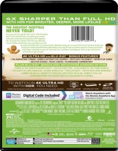 The release comes packed in a standard 4K keepcase with an inner disc tray housing the 4K disc, a Blu-ray movie disc and a Blu-ray bonus disc. The release includes a code for a 4K digital copy of the film as well as a bonus Universal Rewards code that can redeemed for points towards a free digital movie or other rewards. While most of the bonus material from the Blu-ray disc has been ported over to the 4K disc as well, there is really no new bonus material for this release. The Blu-ray and Bonus discs appear to be identical to those included in the Shrek: The Ultimate Collection set released a few years ago. The main discs feature a filmmaker commentary as well as a picture-in-a-picture behind-the-scenes/video commentary (Blu-ray only), a featurette on the character of Donkey, three deleted scenes, some music videos and a photo gallery. The Bonus disc includes over 4 hours of Shrek-related shorts and TV episodes, most of which had already either been released in various Holiday collections or had been included on previous Blu-ray releases of the Shrek films before landing again on this bonus disc. Though it’s nice to get them all here in one place for those who don’t already own the Ultimate Collection release.