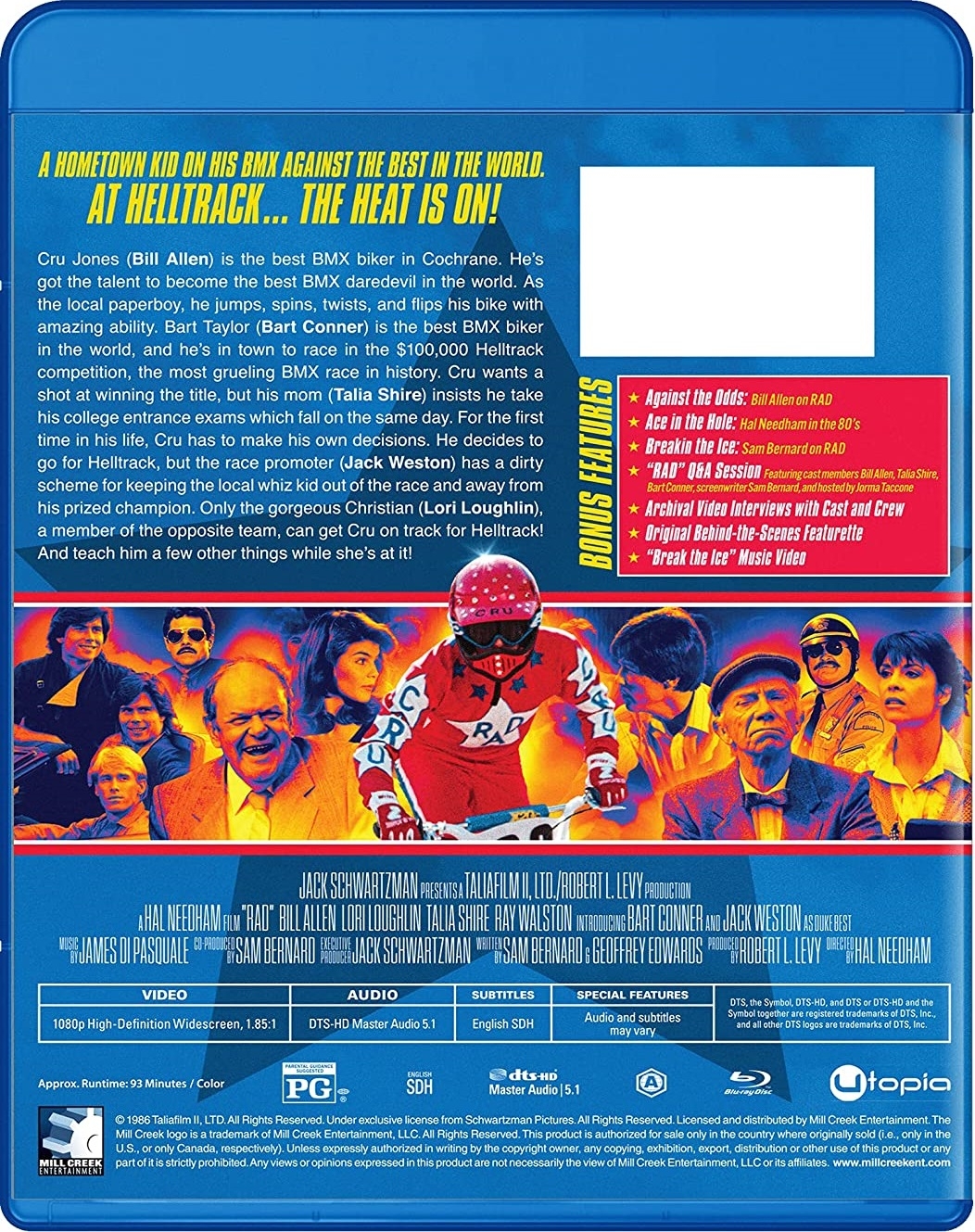 Earlier this year, we reviewed Mill Creek’s SteelBook release of the 1986 cult film Rad. The film has now been re-released in standard Blu-ray packaging. While this version doesn’t include the MovieSpree digital copy, it does contain three additional bonus features, and is priced very affordably. Most of the contents of this review have been taken from our review of the SteelBook release, with some updates for the differences in packaging/content.