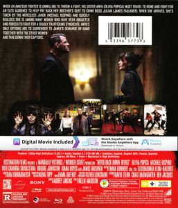 Sony’s Blu-ray release looks and sounds great. The picture is clean and crisp throughout, even in some of the darker sequences. There is an excellent level of detail in faces and textures, helping to increase the brutality of the fight sequences. The audio track captures all the grunts and thuds, helping to really sell these fight sequences. There is also some nice use of the surround channel to make the film more immersive, whether it be the sounds of the crowd, or just the ambient noise of the city. Unfortunately, the release doesn’t include any supplemental material, except for trailers for three other Sony releases. It’s a bit disappointing as some behind-the-scenes look at how the fights were choreographed and filmed would have been quite interesting. The Blu-ray disc resides in a standard HD keepcase without a slipcover. An insert provides instructions on how to redeem an HD digital copy of the film.