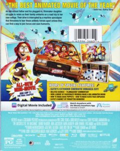 Sony’s Blu-ray release looks and sounds amazing. The picture is practically immaculate, and clear despite the fast pace and everything that’s going on in each scene. Colors are bright and beautiful, and there is a nice level of detail throughout. The film blends all sorts of different media together, but it always looks great. I can’t imagine this film looking any better! The audio track is equally impressive, providing an aural feast as the action picks up gives the viewer a fully immersive experience, with sounds coming from every direction and making you feel like you are right there in the middle of it all with the Mitchells. Sony’s release also comes jam-packed with bonus material, including a feature commentary, an extended/alternate cut of the film containing 40 minutes of deleted/alternate footage, a new “Dog Cop” short, 25 minutes of additional deleted scenes, plus another 25 minutes of behind-the-scenes featurettes and activities. The release includes both a Blu-ray and DVD disc packed on either side of a locking HD keepcase, placed inside a cardboard slipcover. There is also a full color Director’s Notes insert with stories and drawings that put the reader inside Katie’s head, as well as another insert providing instructions on how to redeem an HD digital copy of the film.
