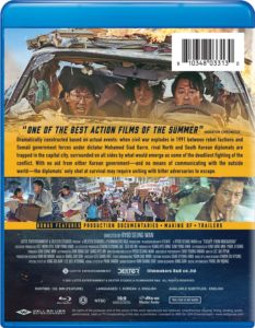 Escape From Mogadishu is a really entertaining film, based on real events from the early 1990s. The film starts off with a lot of humor but then shifts tone becoming an intense, thrilling drama. Well Go’s Blu-ray features an excellent English dub track as well as the original Korean track for those who prefer to watch films in their native language. The video presentation is also quite solid, providing a pleasant picture that really captures the look and feel of the situation. The disc also includes about 10 minutes of interviews and behind-the-scenes footage with the cast/crew. This Blu-ray release comes easily recommended for anyone looking for a well-done thriller with some humor and thought-provoking moments as well as some really exciting action sequences.