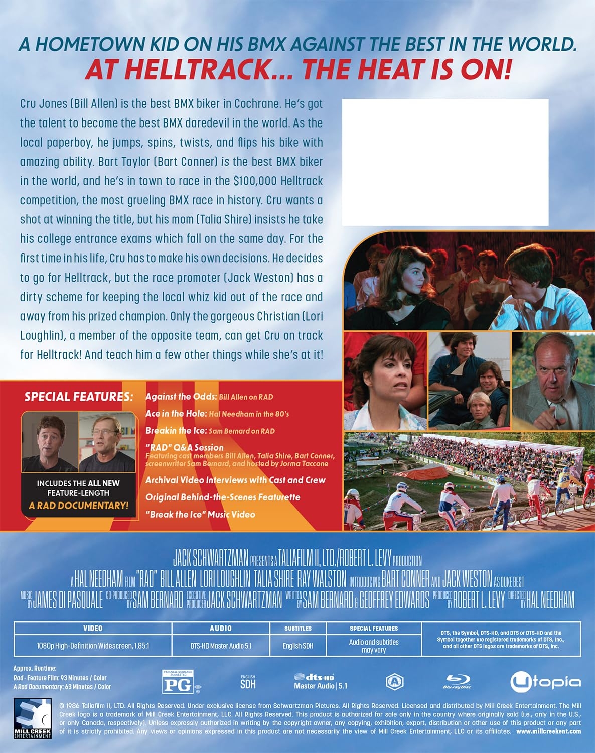 Cru Jones (Bill Allen) is the best BMX biker in Cochrane. He’s got the talent to become the best BMX daredevil in the world. Bart Taylor (Bart Conner) is the best BMX biker in the world, and he’s in town to race in the $100,000 Helltrack competition, the most grueling BMX race in history. Cru wants a shot at winning the title, but his mom (Talia Shire) insists he take his college entrance exams which fall on the same day. He decides to go for Helltrack, but the race promoter (Jack Weston) has a dirty scheme for keeping the local whiz kid out of the race and away from his prized champion. Only the gorgeous Christian (Lori Loughlin), a member of the opposite team, can get Cru on track for Helltrack! And teach him a few other things while she’s at it!