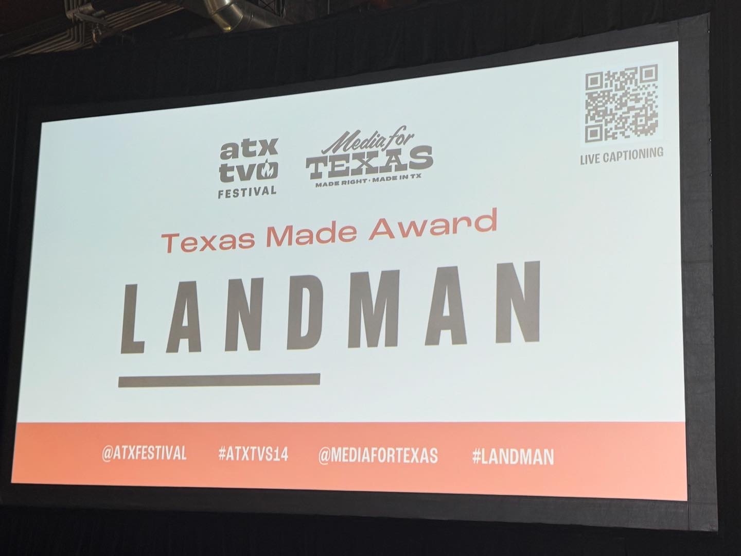 I also had a Fast Forward pass for my second panel of the day, “Texas Made Award: LANDMAN presented with Media For Texas”, which was just across the street at 800 Congress. With Billy Bob Thornton announced as being present, it was packed!