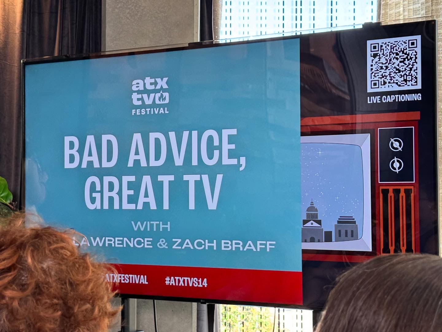 I had a Fast Forward pass for “Bad Advice, Great TV with Bill Lawrence & Zach Braff” in the Hyatt Centric Living Room. It was a really entertaining and intimate discussion between Bill Lawrence & Zach Braff about their successful 25-year collaborative relationship/friendship. Among various other series, they discussed Scrubs and shared some anecdotes about working on the show. They talked about Lawrence currently showrunning two different series at the same time, their writing processes, Braff’s directorial work on Ted Lasso and other shows, and more. It was fun to see how these two know each other so well that they could finish each other’s sentences, or just with a nod, knew exactly what story the other one was about to tell.