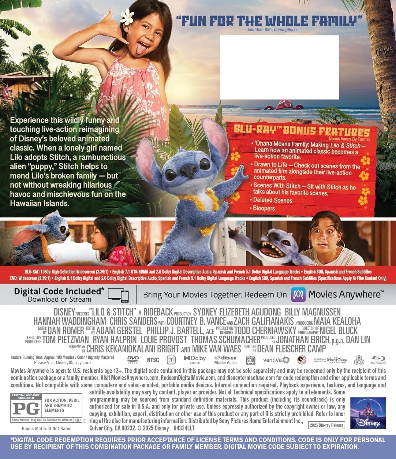 It’s probably been 20 years since I last saw the original animated Lilo & Stitch, so I can’t really say what is different between the animated and live-action versions. However, I found this live-action version to be quite entertaining, and something the whole family can enjoy together. Live-action Stitch is quite fun and delightful, and you instantly forget he’s animated. The effects are really well done, and at the core of this film is a story of love and family, mixing a lot of humor in with the heart. This is certainly one of Disney’s better live-action adaptations. The digital release looks and sounds great, and includes a small but entertaining selection of bonus material. It’s certainly worth picking up for fans of the film or characters. And for those on the fence, the movie will also be streaming on Disney+ starting September 3, if you want to check it out there first.