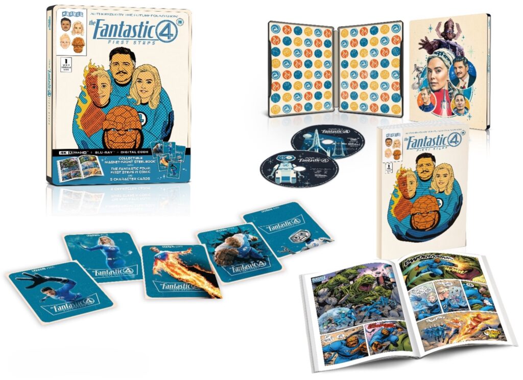For collectors, Amazon offers an exclusive bundle featuring a limited-edition SteelBook® with a custom magnet-front variant cover, five collector cards, and a special The Fantastic Four: First Steps #1 comic making it the ultimate keepsake for fans.