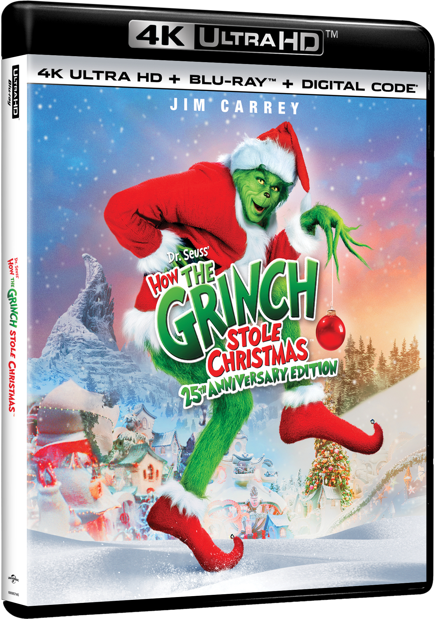 Universal City, California, September 23, 2025 – Discover the true meaning of the holiday season with Imagine Entertainment’s live-action adaptation of the beloved classic, Dr. Seuss’ How the Grinch Stole Christmas on 4K Ultra HD and Steelbook from Universal Pictures Home Entertainment available on November 11, 2025. To celebrate its 25th anniversary, the film returns in a stunning newly remastered edition featuring Dolby Vision and Dolby Atmos for an enhanced home viewing and listening experience. This special release also includes over 30 minutes of brand-new bonus content exploring the making of the beloved holiday classic.