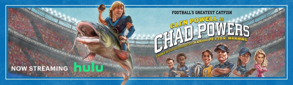 Hulu’s half-hour comedy “Chad Powers” hails from co-creators Glen Powell and Michael Waldron. Season one executive producers include Glen Powell, Michael Waldron, Eli Manning, Peyton Manning, Jamie Horowitz, Ben Brown, Burke Magnus, Brian Lockhart, Kati Fernandez, Adam Fasullo, Luvh Rakhe, and Tony Yacenda. The series is produced by 20th Television.