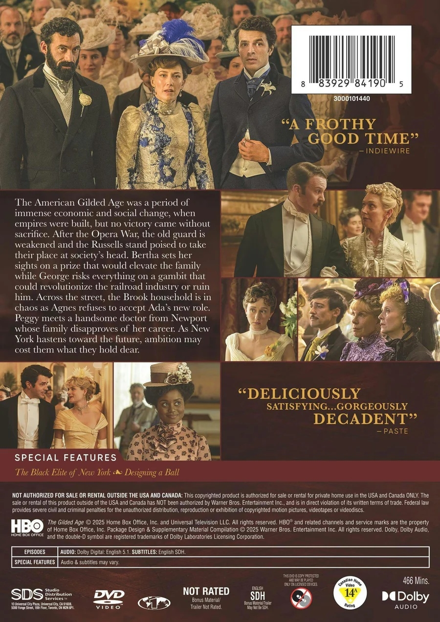 In its third season, The Gilded Age continues to be a thoroughly-entertaining period drama, with interesting storylines, fun characters, beautiful sets/costumes, and lots of witty banter. There are lots of twists and turns this season, and it was great to be able to binge it without breaks. The DVD release includes about 15 minutes of bonus material, and is an easy recommendation for Fellowes fans, but I wish Warner Bros. would give this show a Blu-ray release to really showcase its beauty. The presentation is pretty solid overall, but lacks that extra dash of clarity an HD picture brings.