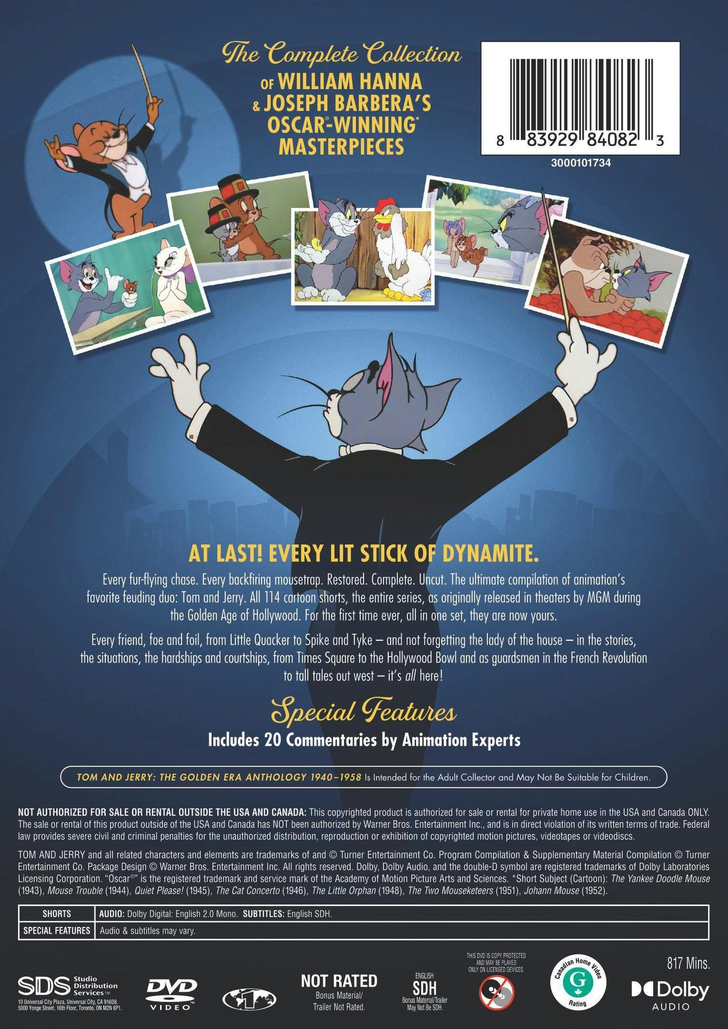 My Rating Shorts:Video:Audio:Extras:Highly Recommended Warner Bros’ new Tom and Jerry: The Golden Era Anthology (1940-58) is a must own for any Tom and Jerry or Hanna-Barbera fan. I was surprised by how many of these Golden Era shorts I remembered watching as a kid, and it was fun to revisit the show. I appreciate that Warner Bros. has released these shorts in their original unedited format, including a disclaimer that society has changed over the past 85 years, rather than modifying the content to fit modern views and acceptability. Though I personally did not have any issues re-watching these shorts on this DVD set. While the DVD release presentation is pretty solid and includes the 20 entertaining commentary tracks, I would go for the Blu-ray release instead as it contains an extra bonus disc with over 3 hours of supplemental material.