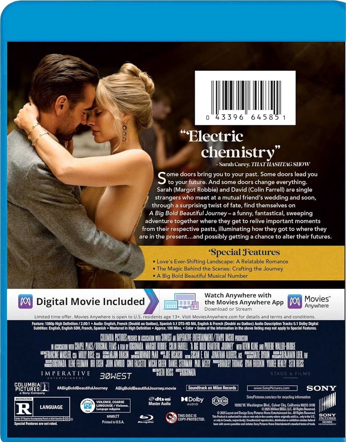 A Big Bold Beautiful Journey is a fun, quirky and fantastical new take on the rom-com, and leads Colin Farrell and Margot Robbie are so delightful. The film also features some great supporting comedic performances by Phoebe Waller-Bridge, Jodie Turner-Smith & Kevin Kline. Sony’s Blu-ray release looks and sounds great, and includes a small but entertaining selection of bonus material. The film is worth a look for those interested in a unique take on the rom-com, or are a fan of the cast.