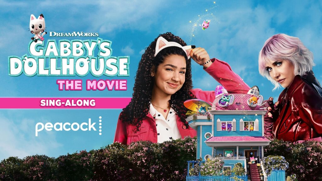 Dust off your vocal cords and join Gabby as she leaps into new worlds with the film’s Sing-Along version. Plus, stream the full “Gabby’s Dollhouse” Collection of bonus content on Peacock, including lyric videos, deleted scenes, extras and more.