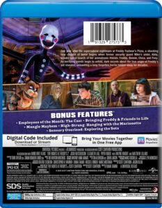 Universal has released Five Nights at Freddy’s 2 on Limited Edition 4K UHD SteelBook, 4K UHD, Blu-ray, DVD and Digital. We were sent the Blu-ray release of the film for review, and it looks and sounds fantastic. I first saw the film in the theater, and actually enjoyed it even more re-watching via disc (without the talkative teen audience from the theater). The picture looks clean and clear, with a solid level of detail throughout. The effects of these creatures coming to life looks natural. There are a lot of darker sequences, and I never noticed any signs of black crush or degradation in the picture. The Dolby Atmos soundtrack provides clear dialogue and quite an immersive experience.