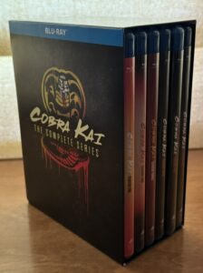 Sony had previously released the individual seasons of Cobra Kai only on DVD in the U.S., but now they have finally made the complete series available in HD with this new Complete Series Blu-ray box set release. (Season 6 is also available as a standalone DVD release for those who just want that to complete their DVD collection.) We were sent this Blu-ray box set release for review from AV Entertainment. When I previously reviewed some of the DVD season releases, I thought they looked and sounded good, and were better than just “watchable” quality, but this new Blu-ray release gives a vast improvement in the picture quality. The Blu-ray provides a crisp, clean picture that looks great, and the increased clarity and detail of this release finally gives the series the presentation it deserves. The DTS audio track provides clear dialogue (which primarily comes from the center channel), and makes nice use of the stereo and surround channels to add an immersive feeling to the presentation and enhance the show’s excellent soundtrack, which sometimes includes some fun callbacks to the 80s music from the films.